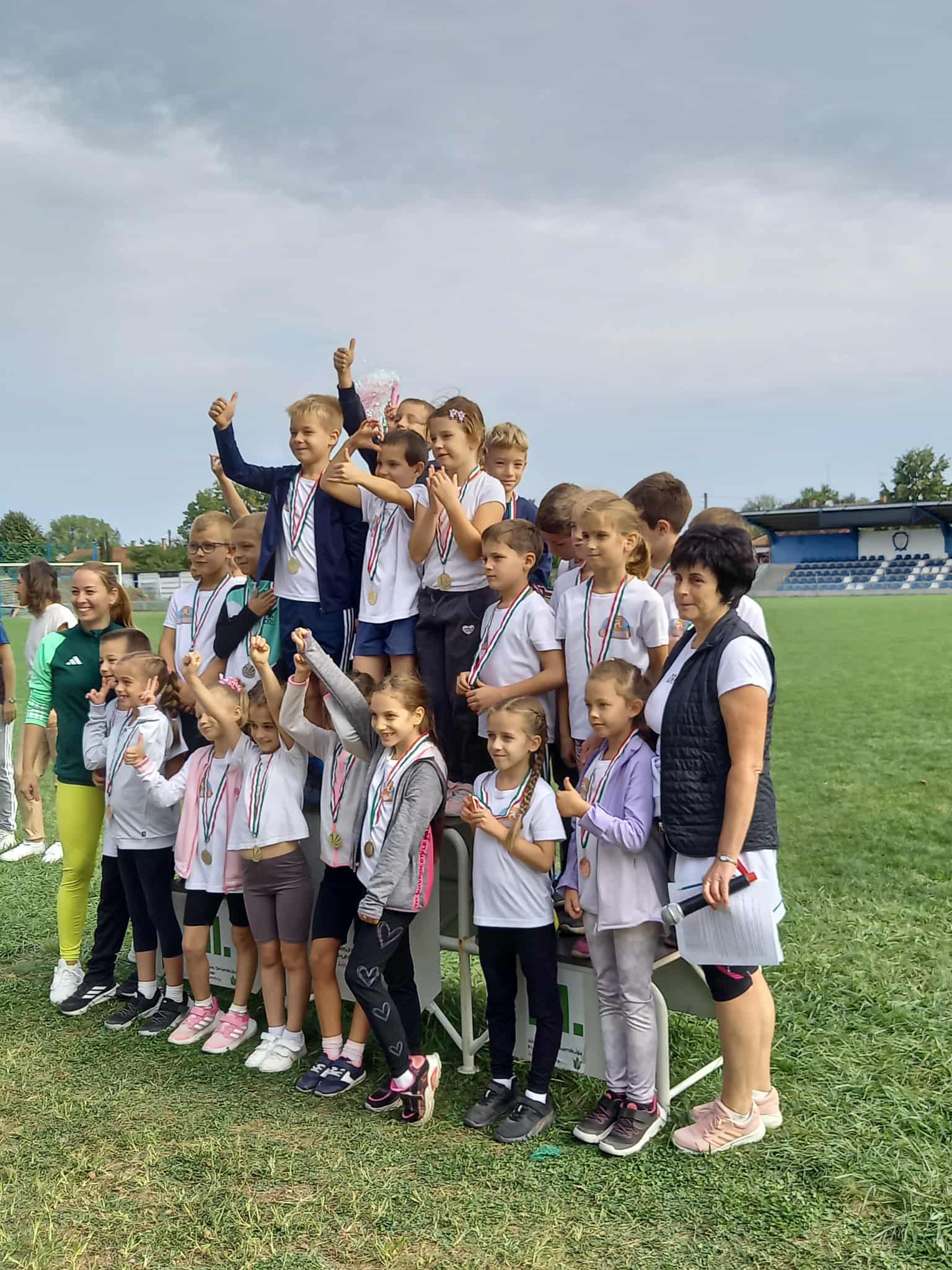 2025. szeptember 24-én délelőtt a Magyar Diáksport Napjával összekötve valósítottuk meg az immár hagyományos „Őszi zsongás” váltófutásunkat az 1-8. évfolyamos tanulók számára. A Városi Stadion atlétika pályáján tartalmas közösségi élményben volt része versenyzőknek, szurkolóknak egyaránt. Ebben az évben rendhagyó módon párhuzamosan, két helyszínen zajlottak az események. Az egyiken a stafétafutás szerveződött, a másikon pedig különleges, humoros ügyességi sporteszközökkel versenyeztek a gyerekek. Szerencsére, az időjárás is kegyeibe fogadott bennünket, így lelkes szurkolók kíséretében nagyon izgalmas futamoknak lehettünk tanúi.